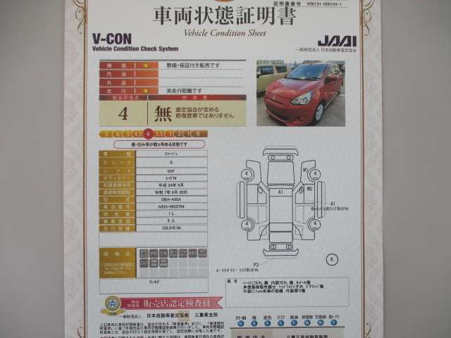 この中古車の「車両品質評価書」を見る