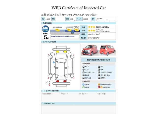 この中古車の「車両品質評価書」を見る