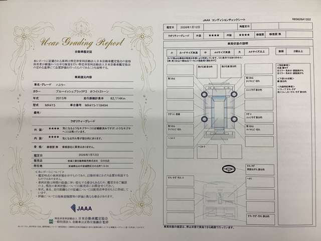 2015(H27)年式、8.3万km、660cc、修復歴無し、車検2026(R08)年9月、定期点検整備付、保証付