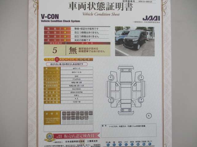 この中古車の「車両品質評価書」を見る
