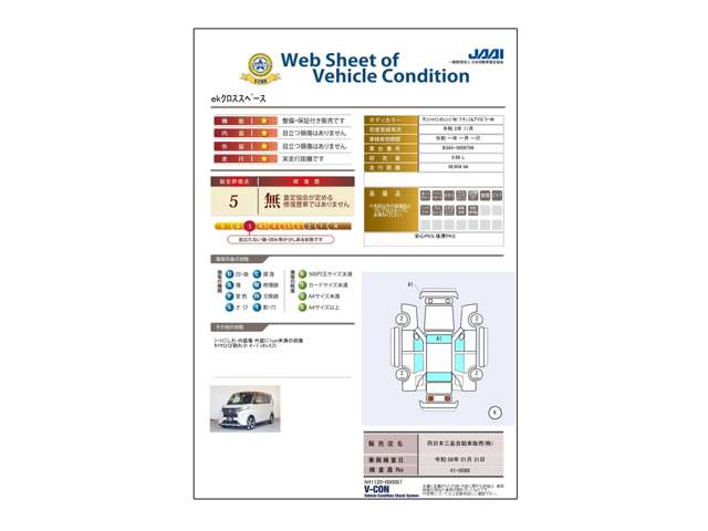 この中古車の「車両品質評価書」を見る