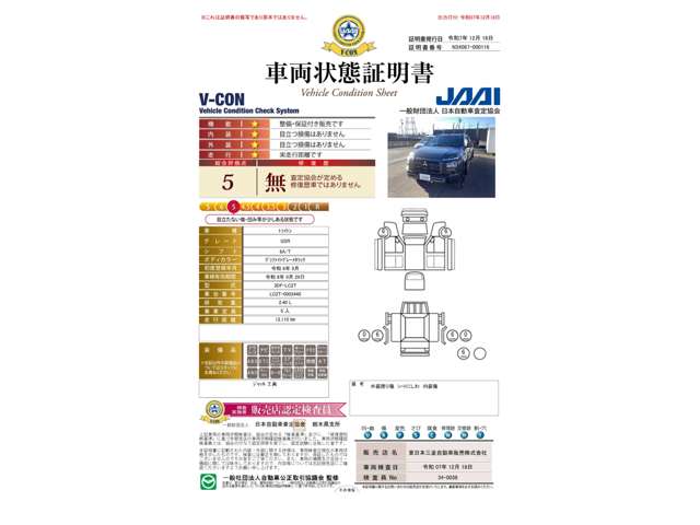 この中古車の「車両品質評価書」を見る