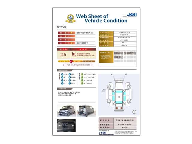 この車は、第三者機関及び第三者機関が認めた有資格者による品質評価検査を受けた中古車です。
